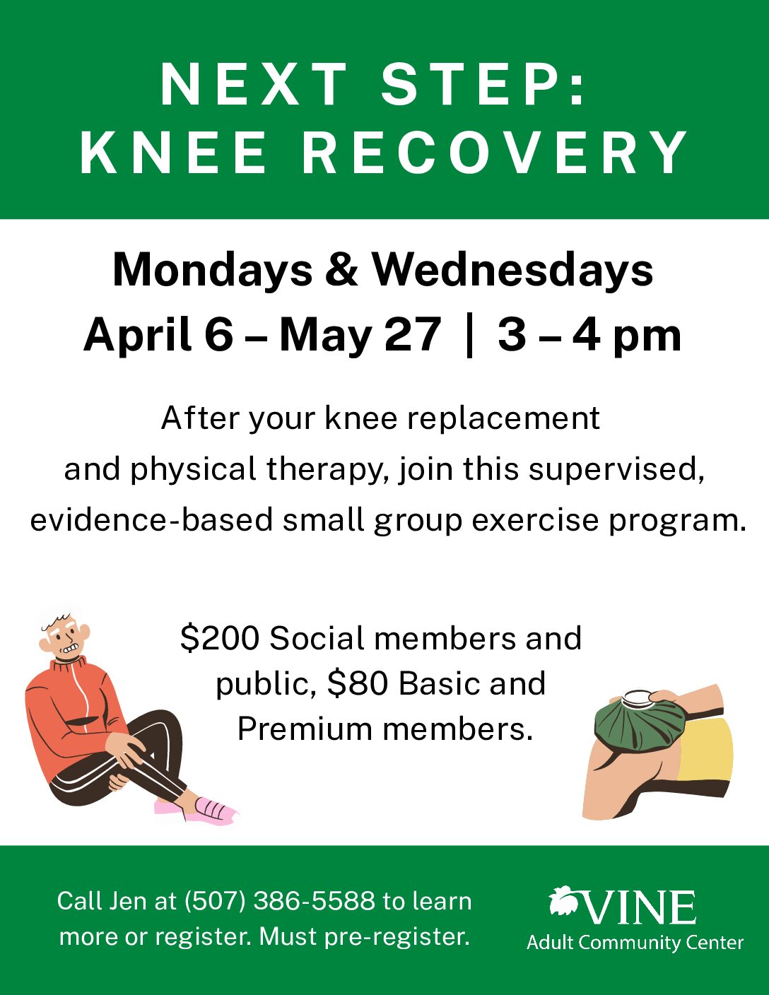 After your knee replacement and physical therapy, join this supervised, evidence-based small group to regain strength, flexibility and stamina.
